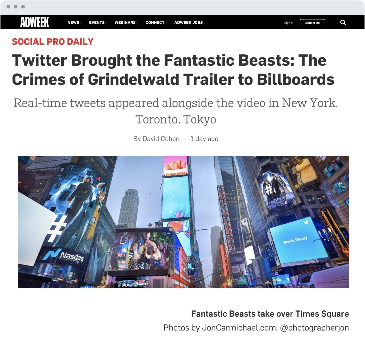 Digital OOH launched in New York, Toronto, and Tokyo to amplify real-time conversation and drive fans to Twitter to watch the full trailer.